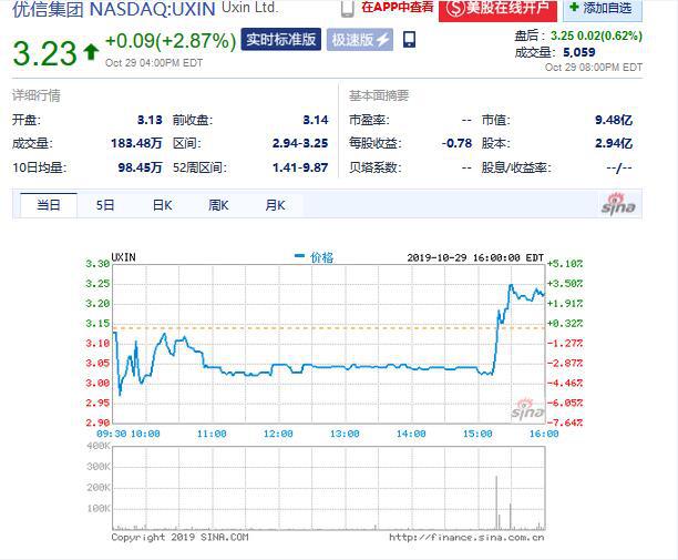 北京時間2019年10月30日凌晨,國內(nèi)最大的二手車電商平臺優(yōu)信(NASDAQ:UXIN)在前日收漲6.08%后,股價再次上漲2.87%,收報3.23美元,處于上漲通道中。自今年十月起,優(yōu)信已累計錄得31.84%漲幅,領(lǐng)跑主要中概股。得益于二手車市場政策不斷完善、消費者理念持續(xù)提升等利好,優(yōu)信二手車首創(chuàng)的全國購業(yè)務(wù)發(fā)展勢頭迅猛,近期股價的大漲也反應(yīng)了其獲得越來越多投資者的認(rèn)可。
