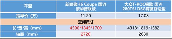 今天咱們就拿新哈弗H6 Coupe 1.5GDIT豪華智聯(lián)版(以下簡(jiǎn)稱新H6 Coupe,指導(dǎo)價(jià)11.20萬)以及合資車型中的“優(yōu)秀學(xué)生”大眾探歌280TSI DSG自動(dòng)舒適型(以下簡(jiǎn)稱大眾探歌,指導(dǎo)價(jià)17.08萬)兩款車型為例,進(jìn)行一次PK,看看究竟誰更值得買。