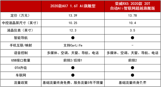 值得注意的是,2020款AX7的系統(tǒng)不僅功能豐富,還為用戶提供有5年不限量的免費服務流量;相比之下,新款榮威RX5自動Ali智聯(lián)網(wǎng)超越旗艦版雖然功能上還算豐富,卻僅為用戶提供基礎流量免費。要知道智能系統(tǒng)的功能往往離不開移動互聯(lián)網(wǎng)的支持,在定價更高的新款榮威RX5上卻需要用戶再為服務流量掏錢,論實惠自然還是2020款AX7遙遙領先。