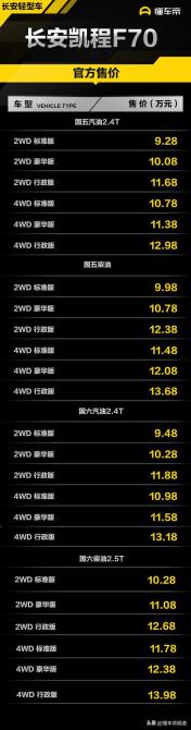 長(zhǎng)安凱程F70有著硬朗的造型和乘用化的內(nèi)飾,配置也比較豐富,整體還是有不錯(cuò)的競(jìng)爭(zhēng)力。近些年隨著皮卡政策的逐步解禁,國(guó)內(nèi)各個(gè)車企推出新車型的速度也在加快,相信作為中歐合作全球新一代大皮卡的長(zhǎng)安凱程F70可在眾多對(duì)手中脫穎而出,推動(dòng)皮卡高端化的發(fā)展進(jìn)程。大家對(duì)這款車有什么想說(shuō)的也歡迎文章后留言!
