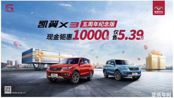 自凱翼X3五周年紀(jì)念版車型推出以來,市場(chǎng)反饋好評(píng)不斷。其“現(xiàn)金鉅惠10000元 僅售5.39萬”的福利政策,在各地方車展及終端門店都吸引了大量消費(fèi)者的關(guān)注,斬獲不少訂單,而優(yōu)秀的銷售業(yè)績(jī)背后自然也離不開其優(yōu)秀的產(chǎn)品力。