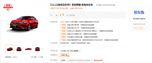 剛一打開(kāi)百度地圖,就發(fā)現(xiàn)附近有一條優(yōu)惠購(gòu)車的提示信息,點(diǎn)進(jìn)去則是易車的11·11購(gòu)車狂歡節(jié)界面,我看了很久的那款吉利繽瑞居然有5折購(gòu)買權(quán)益!當(dāng)然,不可能真的只有5折,而是有機(jī)會(huì)5折拿下,名額有限,要看運(yùn)氣。