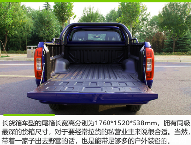 這次實(shí)拍長(zhǎng)城炮商用皮卡車型均為長(zhǎng)貨箱版本,1760mm的進(jìn)深可以說在同級(jí)別中處于最深了。其實(shí)這樣的空間表現(xiàn)很容易給這臺(tái)車打造出兩種“人設(shè)”。一種是能拉貨,一種是能戶外。