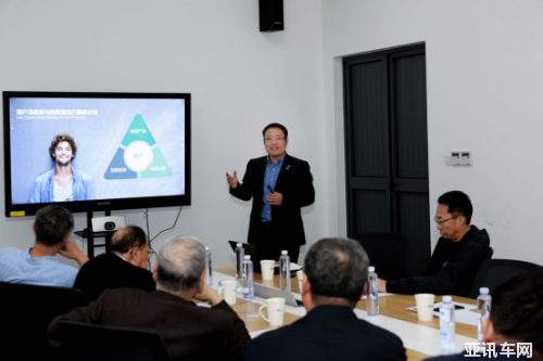 甲醇氫燃料電池的動力總成結(jié)構(gòu)與純電車相似,為未來的平臺化、推廣應用創(chuàng)造條件。圖為,愛馳汽車聯(lián)合創(chuàng)始人兼CEO谷峰向領導、專家介紹愛馳。