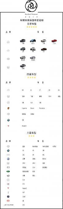 據(jù)了解,“2019車輛未來保值率星級榜” 通過對市場上590款包括燃油車、電動車(2019年10月前上市)在內(nèi)的主流乘用車進行科學(xué)建模、深度分析,最終評選出未來三年保值率最高的60款車型,并以相應(yīng)保值率排名分為三個星級,前10名為五星車型,未來三年保值率在66.3%-76.5%區(qū)間;前11-30名為四星車型,未來三年保值率在61.9%-66.2%區(qū)間;前31-60為三星車型,未來三年保值率在51.7%-61.8%區(qū)間。