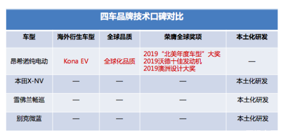 品牌技術沉淀是一款汽車的硬性通行證,因此我們有必要了解下4款車型的背景以及品牌實力背書。作為北京現(xiàn)代首款純電SUV車型,昂希諾純電動繼承了海外版車型KONA EV的技術基因,并基于全球化車型進行了本土化升級,高達500Km的續(xù)航里程堪稱純電市場的一匹黑馬。值得一提的是KONA EV曾榮獲2019“北美年度車型”大獎、摘得“2019沃德十佳發(fā)動機”稱號,在銷量上更是與全球純電動汽車界的傳奇車型-日產(chǎn)聆風相匹敵,率先突破40萬輛大關,實力可謂一騎絕塵。