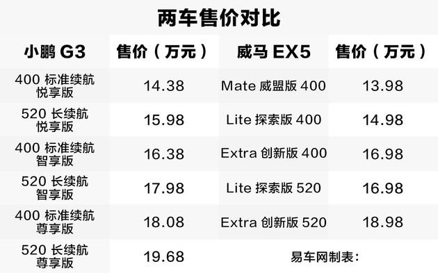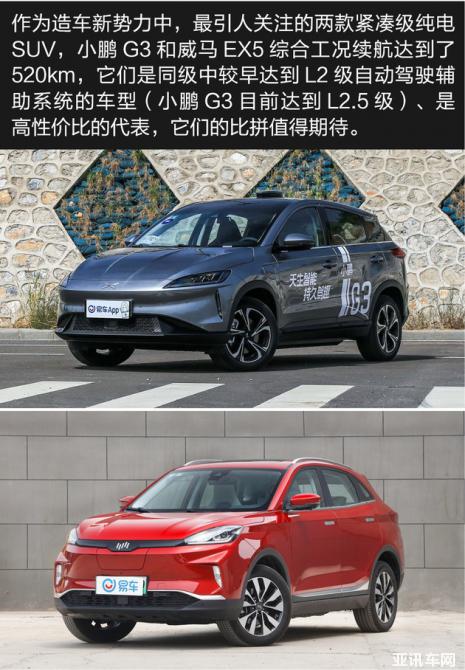 小鵬G3對比威馬EX5 續(xù)航相同差價1萬如何選?