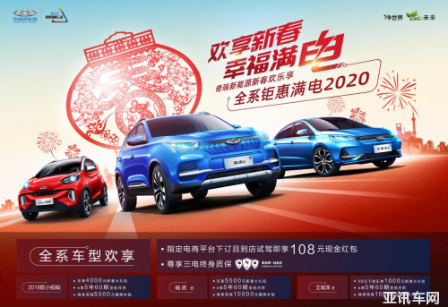 春節(jié)的腳步悄悄臨近,作為我國(guó)最隆重的傳統(tǒng)節(jié)日,提前搶購(gòu)年貨和“大件”是每個(gè)家庭都會(huì)有的節(jié)前準(zhǔn)備,同時(shí)今天開(kāi)啟的雙12購(gòu)物節(jié)也在為年底購(gòu)物熱潮同步升溫加火。為了讓消費(fèi)者盡享新春快樂(lè),奇瑞新能源在2019年12月-2020年2月開(kāi)啟了一系列誠(chéng)意十足的新春促銷活動(dòng)。此次活動(dòng)優(yōu)惠力度空前,包括今年隆重上市的2019款小螞蟻、瑞虎e、艾瑞澤e在內(nèi)的三款明星車型,到店試駕即送108元現(xiàn)金紅包,購(gòu)車還可享受最高萬(wàn)元置換補(bǔ)貼和三電終身質(zhì)保政策。對(duì)于想要開(kāi)新車回家過(guò)年的用戶而言,可是一次非常超值的機(jī)會(huì)呢。