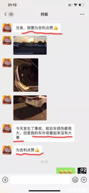 事后,博越PRO車主在與朋友聊起這起追尾時(shí),也不禁感嘆“多虧了博越PRO車硬才有驚無險(xiǎn)“,忍不住要為國產(chǎn)良心車“吉利點(diǎn)贊”。