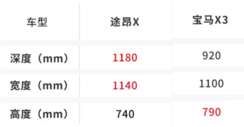 后備廂方面,途昂X在深度和寬度方面都要領(lǐng)先寶馬x3,這使得它日常的載物能力有更好的表現(xiàn)。高度方面盡管稍微遜色于對(duì)手,但其實(shí)這主要影響的是放大件物品的能力,如果有類似需求,可以通過放倒途昂X的后排椅背來解決,純平的地板不會(huì)對(duì)置放物品形成干擾,而更長(zhǎng)的軸距和車長(zhǎng),在這種情況下則能展現(xiàn)出很好的優(yōu)勢(shì)。