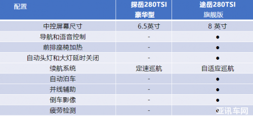 大眾探岳和途岳對比——兩臺SUV的車輛配置和主動安全方面的功能差異