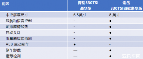 大眾探岳和途岳對比——其他差異