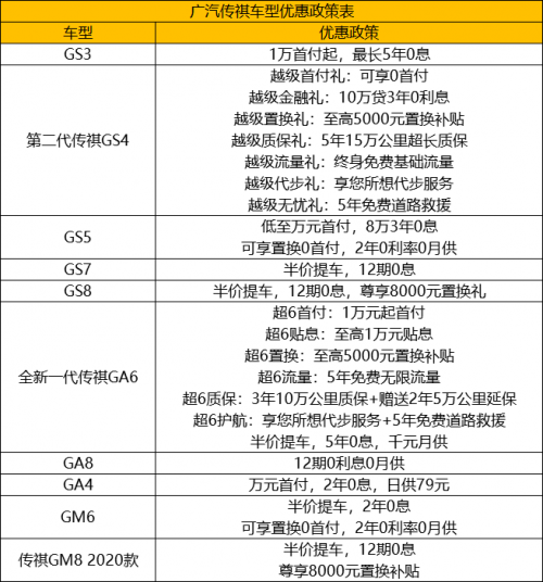 現(xiàn)在購(gòu)買2020款傳祺GS8即可享受:半價(jià)提車,12期0息,尊享8000元置換禮。