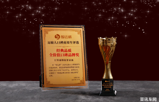 更是憑借過硬的品質(zhì)、卓越的性能,持續(xù)攀升的市場份額,極佳的用戶口碑,江鈴福特輕客家族在由《運輸人》網(wǎng)主辦,以“創(chuàng)新引領(lǐng)”為主題的“智遠杯” 2019運輸人口碑商用車評選活動中,一舉斬獲“經(jīng)典品質(zhì)全價值口碑品牌獎”。