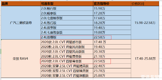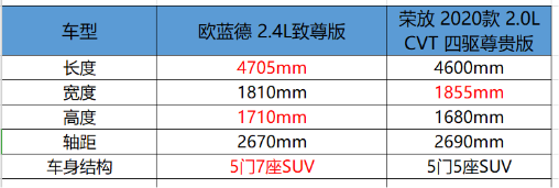 上面提到,家用SUV的配置不在乎有多么豐富熱鬧,關(guān)鍵要實(shí)用,能夠讓駕乘體驗(yàn)變得更加舒適、便捷。下面我們就從價(jià)格相當(dāng)?shù)膹V汽三菱歐藍(lán)德2.4L致尊版和榮放2020款 2.0L CVT 四驅(qū)尊貴版,看看同等價(jià)位下各自的配置實(shí)用性究竟如何。