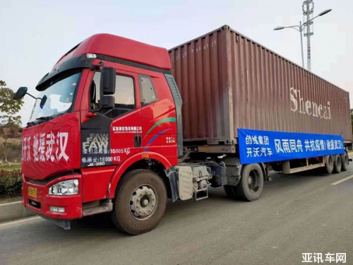 (為武漢運(yùn)送救援物資的解放商用重卡)