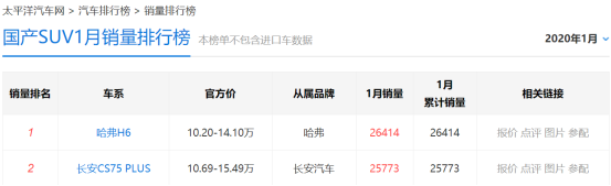 小編之所以在開頭預(yù)測長安CS75 PLUS未來銷量將持續(xù)走高,并非夸夸其談空穴來風(fēng),我們拿具體的數(shù)據(jù)來說話。2020年1月份,哈弗H6銷售了26414輛,而長安CS75 PLUS則售出了25773輛,兩者之間的差距僅為641輛。從銷量來看,兩者差距的逐漸縮短,CS75 PLUS一路勢不可擋!