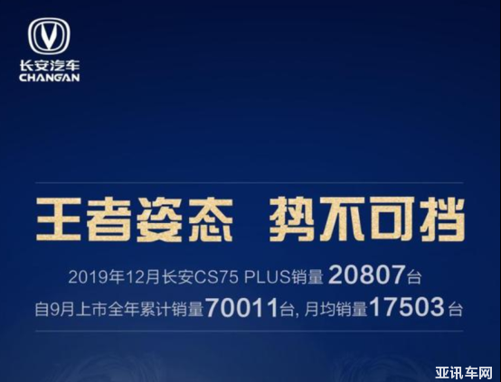 在梳理完了CS75 PLUS今年前兩月目前的銷量情況,我們再把時間軸撥回到2019年。自2019年9月份上市之后,長安CS75 PLUS 銷量便呈現(xiàn)出了持續(xù)走高的態(tài)勢,2019年12月長安CS75 PLUS銷量達(dá)到了20807臺。這款車型在2019年9月份上市后,用不到四個月的時間就銷售了70011臺。月均銷量高達(dá)17503臺,成為了名副其實(shí)的2019年上市新車月均銷量王。