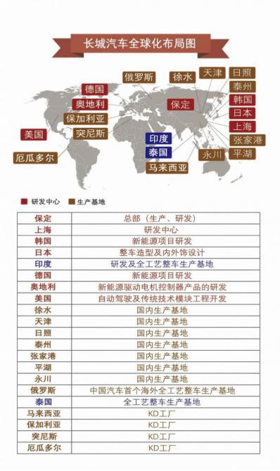 生產(chǎn)層面,哈弗在俄羅斯圖拉州,打造了中國首個全工藝海外整車工廠,這與馬來西亞、厄瓜多爾、突尼斯等地的KD工廠,以及國內(nèi)九大生產(chǎn)基地形成了“9+5”的全球化生產(chǎn)體系。此外,長城汽車更在年初收購了通用印度塔里岡工廠和泰國羅勇府工廠,這不僅向世界宣告了進軍南亞和東盟市場的決心,更為哈弗繪制世界版圖添加濃墨重彩的一筆。