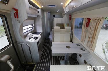 車身右側(cè)配置電動車門,以及手動遮陽蓬,可選裝外置抽拉灶具、外推窗戶或兩側(cè)推拉窗。