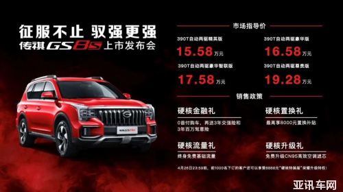 傳祺GS8S售價區(qū)間為15.58萬-19.28萬元。同時,廣汽傳祺還推出金融禮、置換禮、流量禮、升級禮等多重超值禮包,保證給到消費者足料的驚喜。