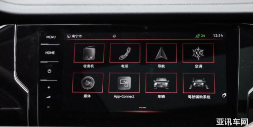 液晶中控屏的尺寸還是維持在9.2英寸這個(gè)大小,左邊的觸控按鍵和19款的車型沒有什么區(qū)別。車機(jī)系統(tǒng)的主菜單清晰明了,上面排布了8個(gè)圖標(biāo),每個(gè)圖標(biāo)都可以像手機(jī)上的APP一樣隨意移動(dòng),十分的方便。