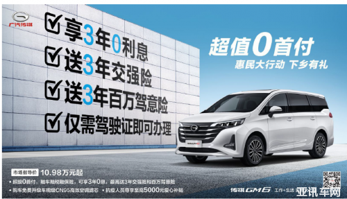 當(dāng)然,除了上述優(yōu)惠外,廣汽傳祺還心系農(nóng)村消費(fèi)者,積極跟進(jìn)廣東省2020汽車下鄉(xiāng)新政,為農(nóng)村消費(fèi)者帶去高質(zhì)量的產(chǎn)品、貼心的服務(wù)及誠意滿滿的購車福利,旗下4款高品質(zhì)車型——第二代傳祺GS4,全新一代傳祺GA6、傳祺GM6、傳祺GS3以入選目錄,省內(nèi)農(nóng)村居民購買以上車型可享受5000元補(bǔ)貼,其中,購買傳祺GM6、GS3,還可再享下鄉(xiāng)優(yōu)惠5000元,大大降低了農(nóng)村消費(fèi)者的購車壓力,讓他們輕松擁有舒適、安心的座駕。