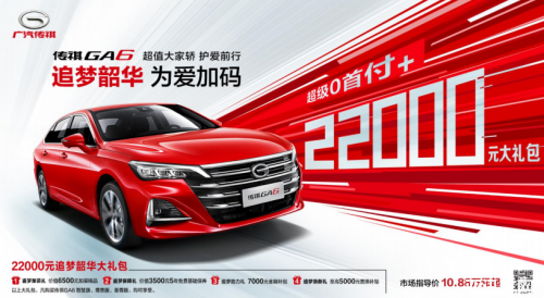 現(xiàn)購買全新一代傳祺GA6智慧版及以上車型可尊享22000元大禮包,其中包含追夢(mèng)加裝禮:價(jià)值6500元加裝精品;追夢(mèng)保障禮:價(jià)值3500元5年免費(fèi)基礎(chǔ)保養(yǎng);追夢(mèng)助力禮:至高7000元金融補(bǔ)貼;追夢(mèng)煥新禮:至高5000元置換補(bǔ)貼。
