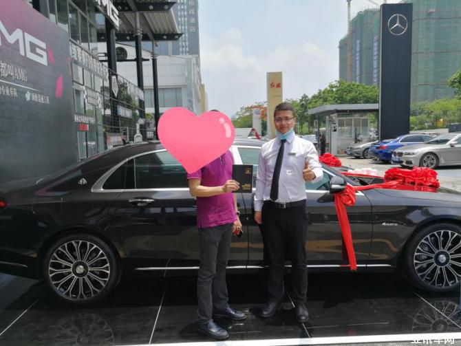 (劉先生和他的全新邁巴赫S450在南寧冠星交車儀式上)