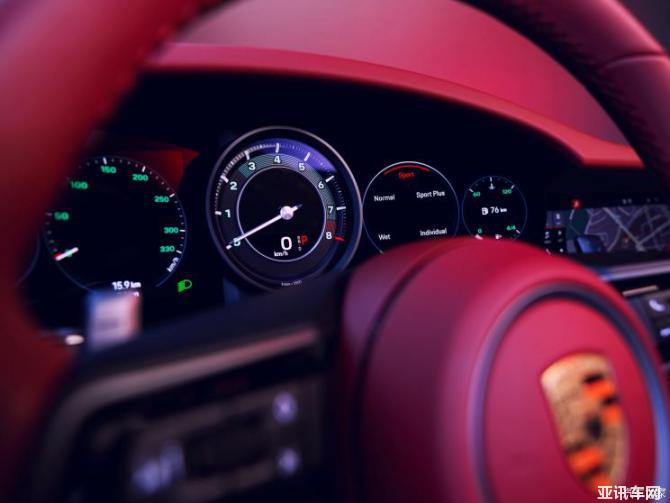 內(nèi)飾方面,911 Targa 4S Heritage Design Edition(經(jīng)典重現(xiàn)特別版)提供“紅色+米色”和“黑色+米色”兩種搭配,同時其門板以及座椅上還采用了燈芯絨材質(zhì),這同樣是復古元素的體現(xiàn)。作為特殊版車型,除了副駕駛前方的綠色的儀表背景字、金色標識、門框踏板、帶有皮質(zhì)保護套的鑰匙這些等細節(jié),保時捷還為新車附帶了一款由Porsche Design出品的特別版腕表可供購買,其設(shè)計元素與新車保持一致,包括金色/紅色搭配的配色,以及綠色背景表環(huán)等。