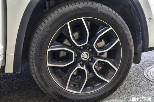 前門處的鍍鉻標識上,紅色 "GT" 字樣的 LOGO 彰顯了這輛轎跑 SUV 的身份,呈花瓣狀的五輻式輪轂與柯迪亞克四驅旗艦版的輪轂造型一致,所搭配的馬牌 ContiSport Contact5 輪胎,更偏重操控性,前后輪規(guī)格都為 235/50R19。