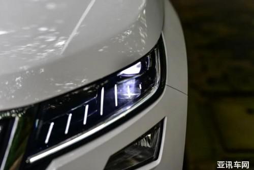 ACC 的測距雷達被安置在柯迪亞克 GT 的中網(wǎng)內(nèi),黑色的烤鋼琴漆材質提升了整車的精致度。除此以外,整個前臉并沒有更多突破性的設計,豪華版以上車型均配備了 LED 光源的前大燈,全系依舊標配 LED 日間行車燈。