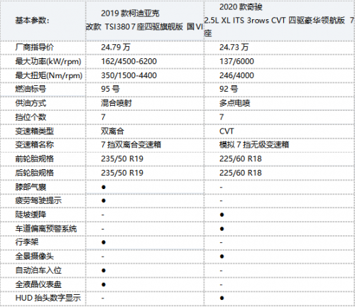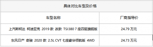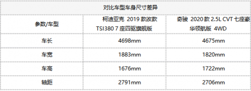 日產(chǎn)奇駿和柯迪亞克比較(三)配置對比