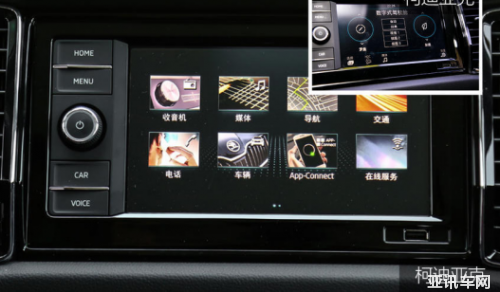中控部分,柯迪亞克配備的是一塊8英寸觸控屏,采用鑲?cè)胧皆O(shè)計(jì)。車機(jī)內(nèi)嵌經(jīng)典的MIB多媒體娛樂系統(tǒng),屏幕支持多點(diǎn)觸控,響應(yīng)非常靈敏,畫面流暢,并支持Apple CarPlay以及百度CarLife功能,操作體驗(yàn)很不錯(cuò)。