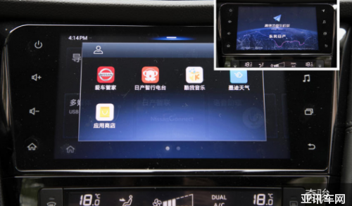 奇駿配備一塊9英寸觸控屏,其內(nèi)嵌的“IMAX版”車機(jī)由東風(fēng)日產(chǎn)原廠開發(fā),支持車聯(lián)網(wǎng)以及OTA在線升級。雖然屏尺寸夠大,分辨率也不錯(cuò),但是這塊屏幕的造型和系統(tǒng)界面多少有些“本土化”,缺乏一些高級感,與內(nèi)飾氛圍不是很搭。