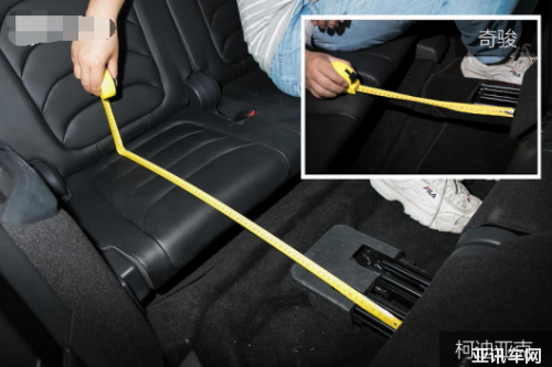 下面保持第二排座椅不動(dòng),體驗(yàn)者進(jìn)入第三排。經(jīng)過實(shí)際測量,在同樣將第二排座椅調(diào)至最前的情況下,柯迪亞克第三排腿部空間縱向長度達(dá)到40cm,奇駿此項(xiàng)數(shù)值則為30cm,距離柯迪亞克還是有一定差距的。