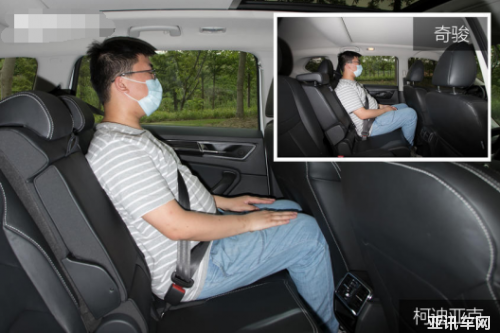 對于7座SUV來說,相信大家更關(guān)心的還是第三排與第二排的空間表現(xiàn),所以,在本節(jié)我們將重點(diǎn)為您展示7座版柯迪亞克和奇駿后兩排的乘坐空間。為了平衡第二排與第三排的乘坐空間,柯迪亞克和奇駿第二排座椅都支持前后移動(dòng),將兩車第一排座椅調(diào)整為身高178cm體驗(yàn)者正常坐姿的狀態(tài),再將第二排座椅調(diào)至最前,此時(shí)兩車的第二排空間均可以容納178cm的體驗(yàn)者正常乘坐。