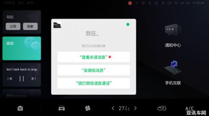 哈弗F5不僅有搶眼的外貌、激情的動力,更有聰明的大腦,其所搭載的微信車載版就以高智能牢牢抓住年輕用戶的心。讓微信上車可以說充分滿足年輕用戶對于社交不下線的需求,哈弗F5首搭騰訊微信車載版,它能夠通過語音播報微信信息、實現(xiàn)微信語音實時通話,絕不錯過老板發(fā)來的工作信息、家人的發(fā)來的問候信息,輕輕一點(diǎn)方向盤上的微信專屬按鍵,信息便會自動語音播報,讓親密永不下線。
