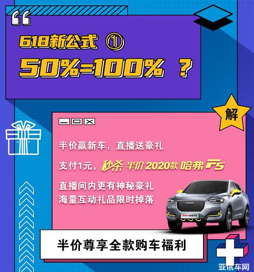 “618”電商節(jié)的出現(xiàn)就是要讓用戶以最高的優(yōu)惠買到最好的產(chǎn)品,哈弗為此也帶來了極大力度的超級鉅惠政策。只要6月18日進(jìn)入長城汽車天貓官方旗艦店的直播間,即可得到專屬于你的618元現(xiàn)金優(yōu)惠。而且大家還能夠在直播間參與支付一元秒殺半價2020款哈弗F5的活動,只要你手速夠快,50%的價格即可買到100%的高品質(zhì)。