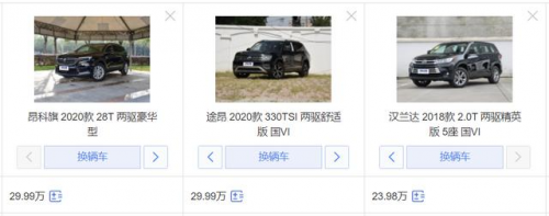 針對很多精打細算的用戶,我們選取了三者的入門級車型進行對比,分別是:售價為29.99萬的昂科旗兩驅(qū)豪華型與途昂舒適版以及售價為23.98萬的漢蘭達兩驅(qū)精英型。