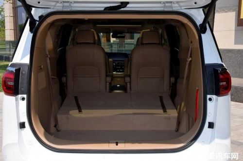 后背箱的容積為521L,可放置3個(gè)20寸以及2個(gè)24寸登機(jī)箱,滿足日常出行需求沒(méi)有問(wèn)題。如果將第三排座椅放倒,容積將會(huì)提升至1650L,可以充分滿足大件物品的裝載要求,唯一的遺憾就是地臺(tái)不平整,第三排放下后有明顯的一個(gè)臺(tái)階。