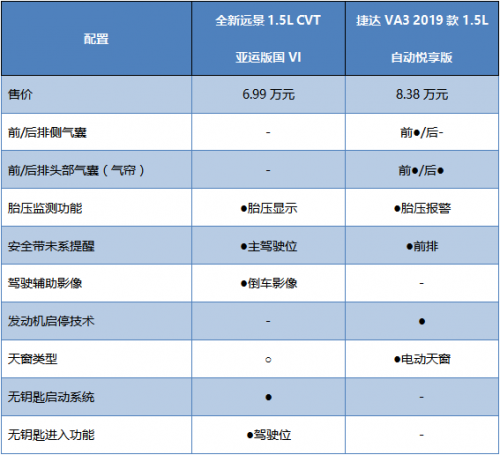 以上這些都是全新遠景所配備的“最強大腦”,那么貴了一萬多的捷達VA3有什么拿手的配置呢?電動天窗、發(fā)動機自動啟停、前排側(cè)氣囊、頭部氣簾,一些比較基礎(chǔ)的東西,看來這場智商的battle,捷達VA3被全新遠景實力碾壓了。