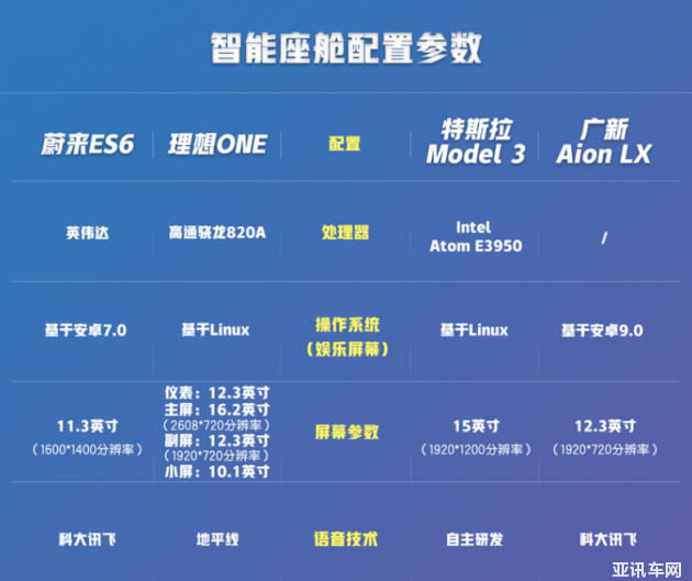 首先在硬件配置方面,蔚來ES6、理想ONE以及Aion LX都搭載了基于ARM架構(gòu)的處理器。而特斯拉Model 3搭載了X86架構(gòu)的英特爾Atom E3950處理器,兩者的區(qū)別簡單來說,X86在處理復(fù)雜任務(wù)的時(shí)候性能更強(qiáng),擴(kuò)展性也更有優(yōu)勢,但缺點(diǎn)是功耗比ARM架構(gòu)高。不過考慮到車機(jī)系統(tǒng)相對固定單一的應(yīng)用場景,ARM架構(gòu)明顯更高效。