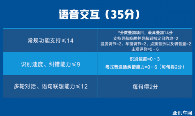 隨著語音技術(shù)的迭代更新,車載語音系統(tǒng)已經(jīng)成為了智能座艙不可或缺的東西。語音交互測試分為3個(gè)項(xiàng)目,首先是常規(guī)的功能實(shí)現(xiàn),其次是語音系統(tǒng)的識別速度、糾錯(cuò)能力等等。最后加入的多輪對話、語音理解能力測試能很好地反映出語音系統(tǒng)是否做到真正的智能化。