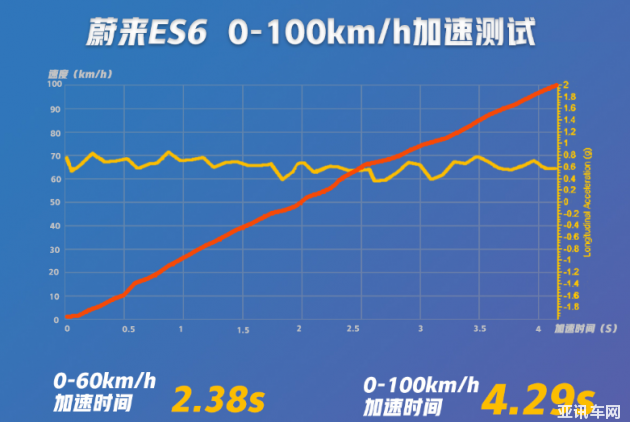 蔚來ES6由于四驅(qū)和電子系統(tǒng)的保護(hù),起步瞬間并沒有任何打滑,動力來的非常快、非常猛,也是唯一給駕駛員帶來眩暈的車型。蔚來ES6官方給出的百公里加速時(shí)間為4.7秒,而實(shí)測卻僅需4.29秒。