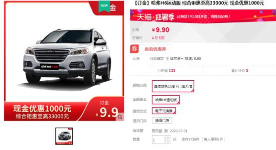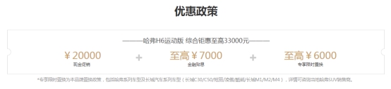 特別要強(qiáng)調(diào)的是,即日起至7月31日,在長城汽車官方旗艦店上9.9元下單,即可再享受1000元現(xiàn)金優(yōu)惠。事實上多重優(yōu)惠的實施,正是得益于哈弗H6的銷量規(guī)模優(yōu)勢,憑借先進(jìn)的技術(shù)及高質(zhì)量的產(chǎn)品,在每一輛車上攤薄了成本,因此才可以做到更實惠,這是也其他品牌無法匹敵的。