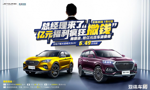 亞訊車網(wǎng)m.sbu3.com】7月12日,奇瑞捷途以一場(chǎng)“總經(jīng)理來了 億元福利瘋狂撒錢”的活動(dòng)瞬間激發(fā)了后疫情時(shí)代的購車潮,多品類優(yōu)質(zhì)車型、一步到位的價(jià)格優(yōu)惠,讓消費(fèi)者的購車熱情充分釋放。