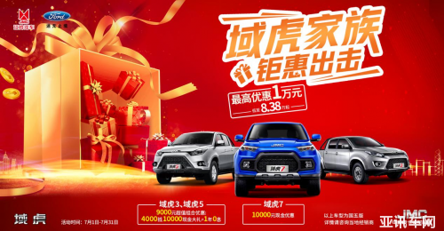 其實(shí)不止是實(shí)力上的出彩,江鈴域虎3一直都有著不少優(yōu)惠活動。7月一整月,江鈴域虎3都提供有4000抵10000的現(xiàn)金打理和1年0息的雙重福利,能一定程度上為購車者減輕購車壓力。