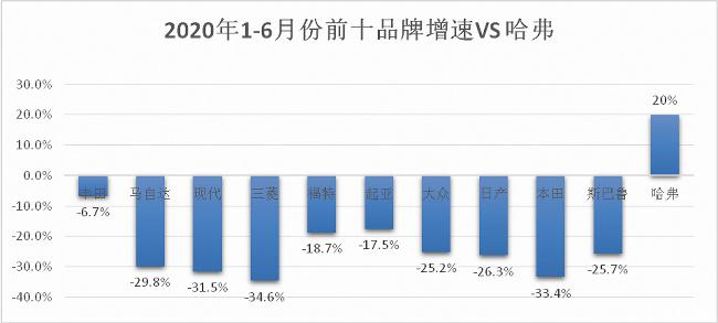 2020年上半年,受新冠疫情影響,澳大利亞整體汽車市場下滑20%,前十大品牌均為負(fù)增長,最大降幅為34.6%。而哈弗品牌憑借優(yōu)異的產(chǎn)品和多年積累的好口碑實現(xiàn)逆勢上漲,同比勁增20%。6月份銷量更是創(chuàng)下歷史最高水平,分別實現(xiàn)環(huán)比增長85%、同比增長54%的佳績!身處當(dāng)前經(jīng)濟整體下跌的情況,哈弗品牌作為自主品牌在澳洲的引領(lǐng)者,銷量穩(wěn)步上揚。在其它品牌紛紛創(chuàng)下歷史新低的時候,哈弗品牌卻大放異彩、一騎絕塵。