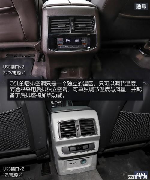 奧迪Q5L和途昂哪個好——空間對比沒有懸念,舒適性配置各有千秋,途昂后排地板幾乎純平,乘坐體驗更舒服